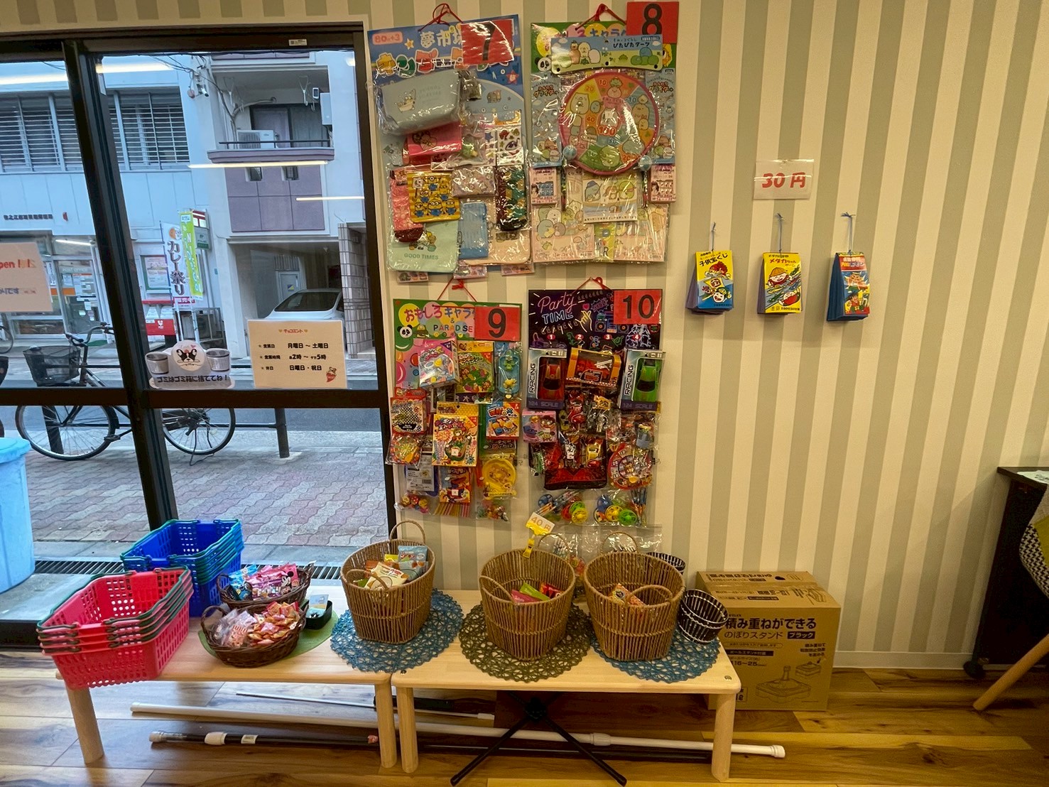 駄菓子屋さんが少なくなったので、昔みたいに子どもたちが自分のお小遣いでおやつを買うことができ、友達と一緒に行きやすい場所を作ってあげたいという想いでオープンしました!