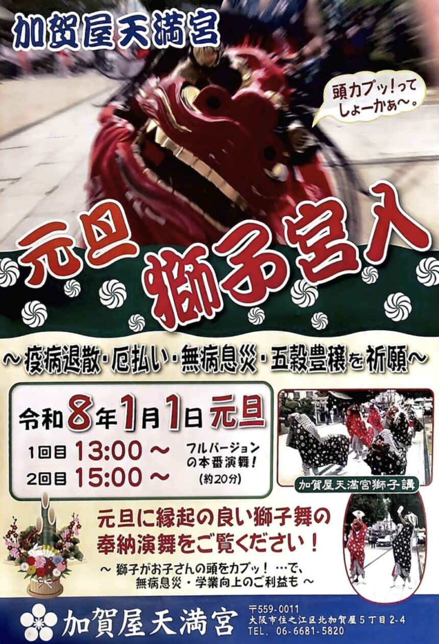 加賀屋天満宮 元旦獅子宮入 2026年1月1日元旦(木)