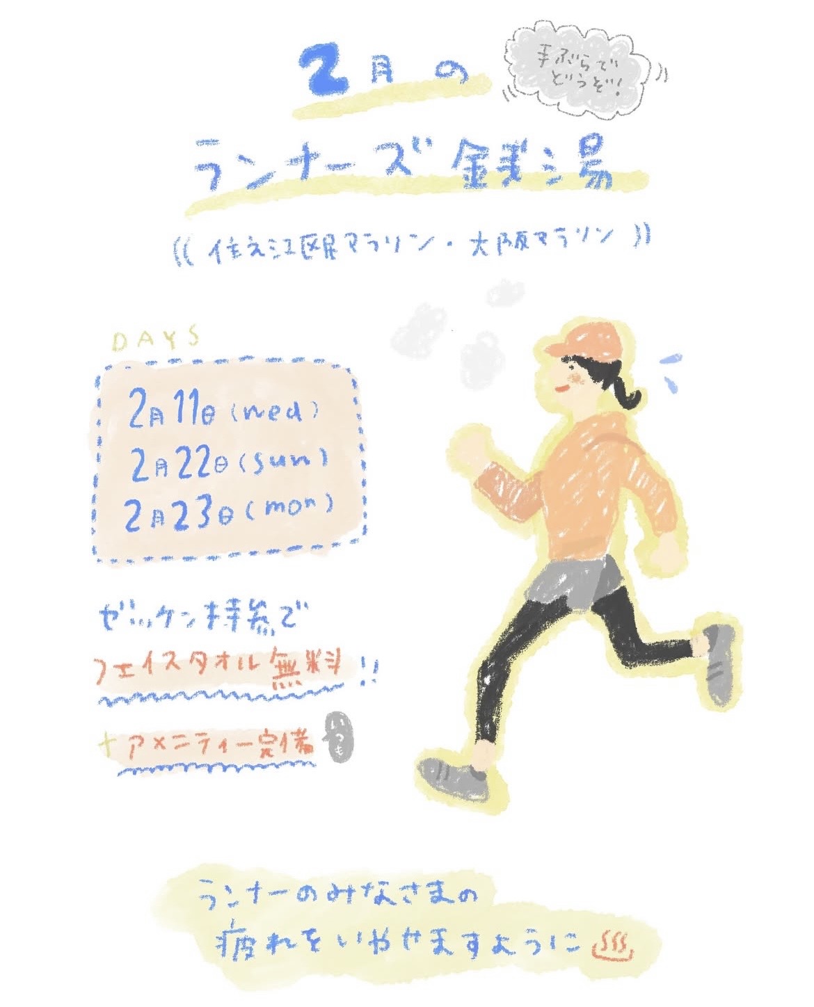 2月のランナーズ銭湯 ~寿楽温泉〜  2026年2月11日(水)・22日(日)・23日(月)