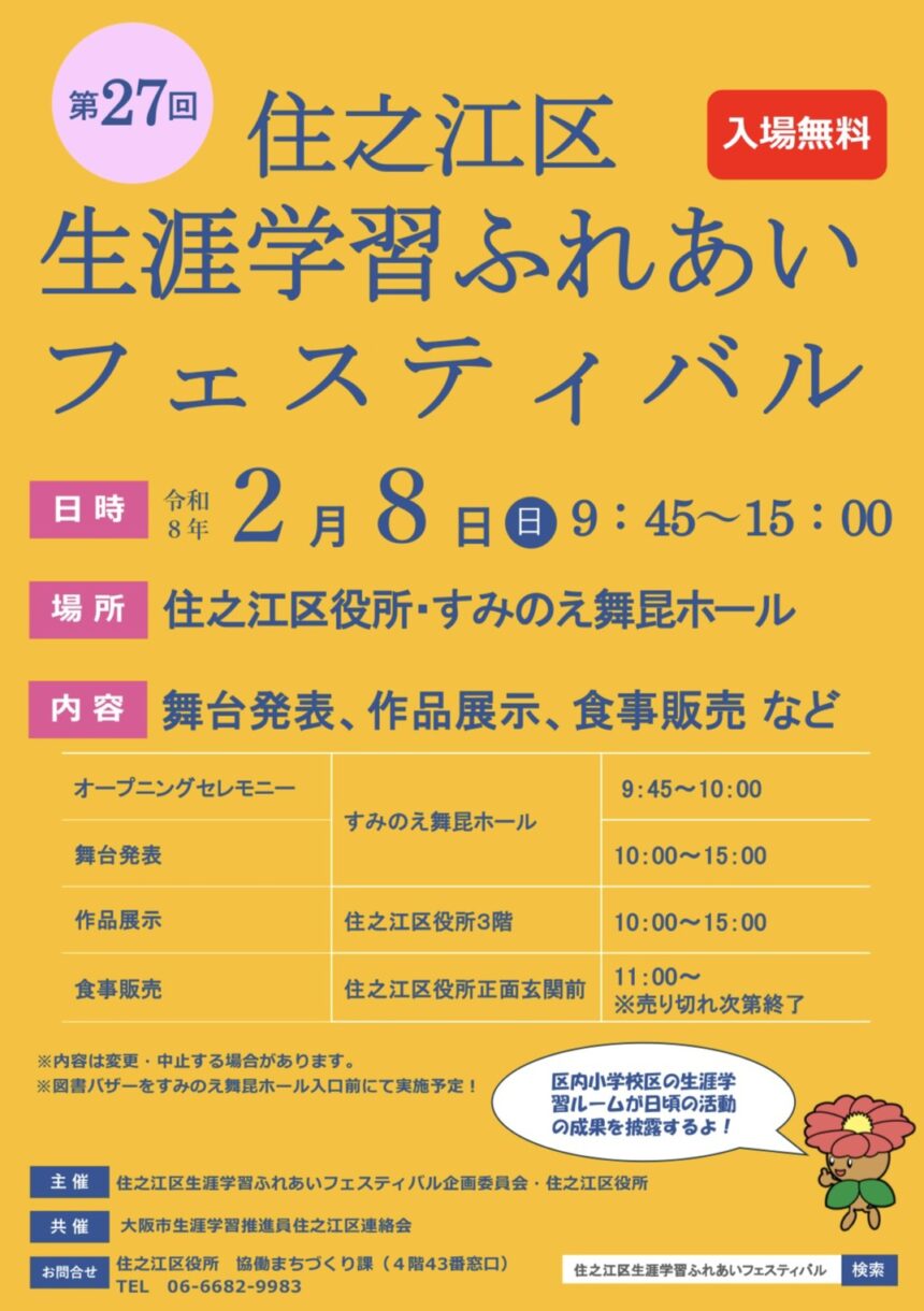 第27回住之江区生涯学習ふれあいフェスティバルを開催します!