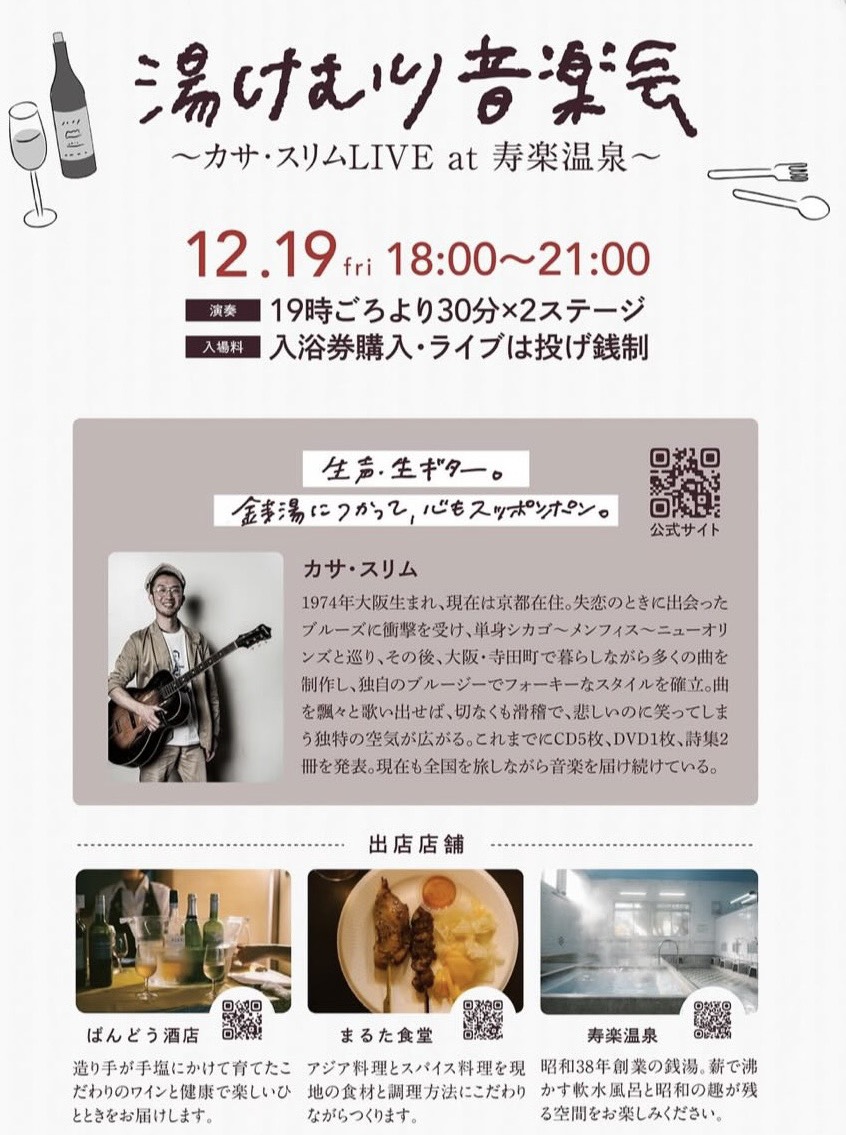 湯けむり音楽会~カサ・スリムLIVE at 寿楽温泉〜  2025年12月19日(金)