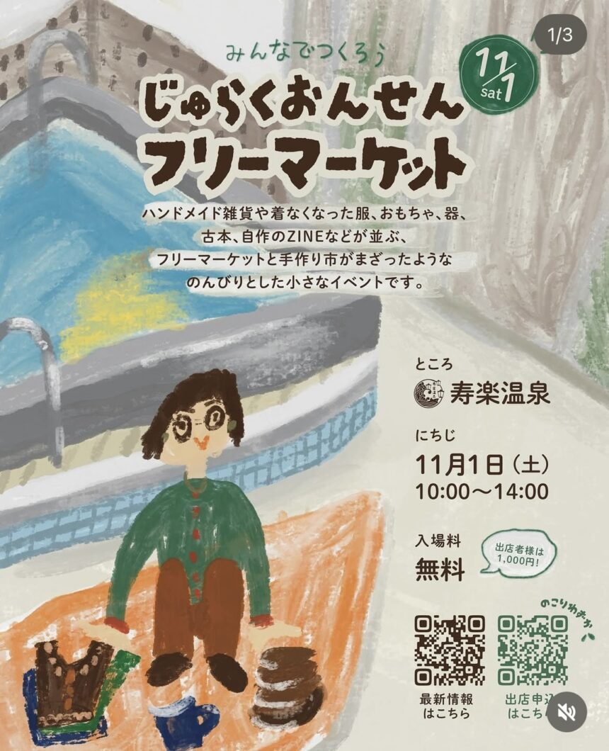 2025年11月1日(土)『じゅらくおんせん フリーマーケット』が寿楽温泉で開催されます!