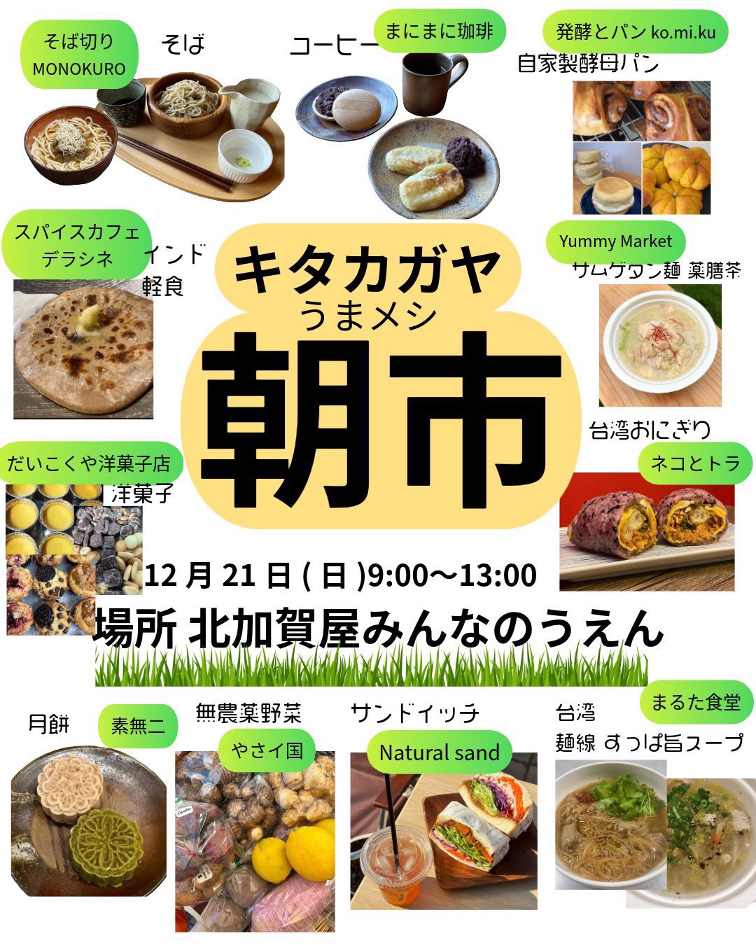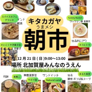 好評の『キタカガヤ(うまメシ)朝市』が 2025年12月21日(日)にみんなのうえんで開催します!!
