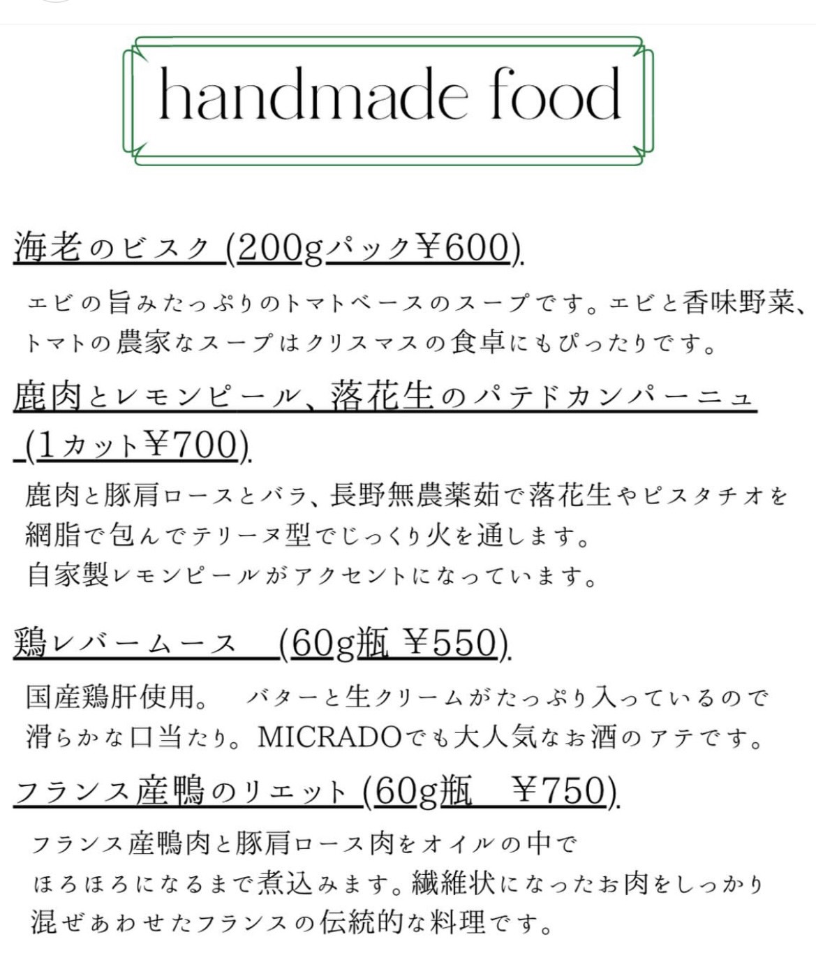 MICRADOでも提供しているナチュラルな食材を使用した加工品を販売致します。