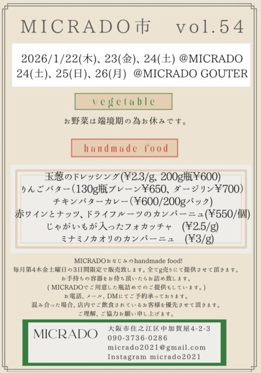 MICRADO市 vol.54 2026年1月22(木)、23日(金)、24日(土)@MICRADO 24日(土)、25日(日)、26日(月)@MICRADO GOUTER