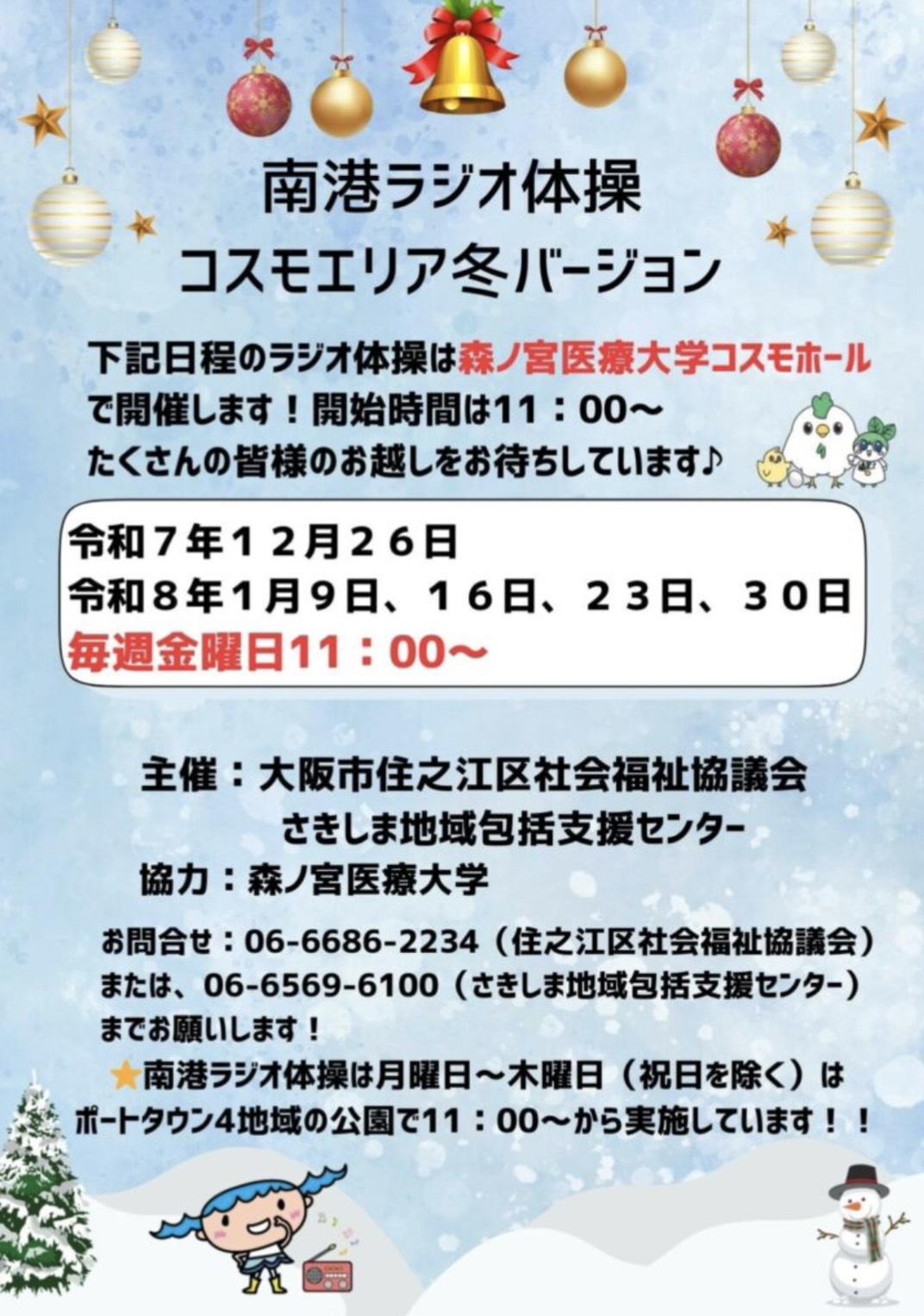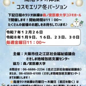 南港ラジオ体操コスモエリア冬バージョン 2025年12月26日(金)、2026年1月9日(金)、16日(金)、23日(金)、30日(金)