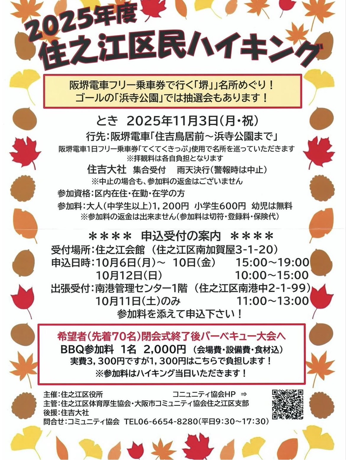 2025年度 住之江区民ハイキング 2025年11月3日(月・祝)
