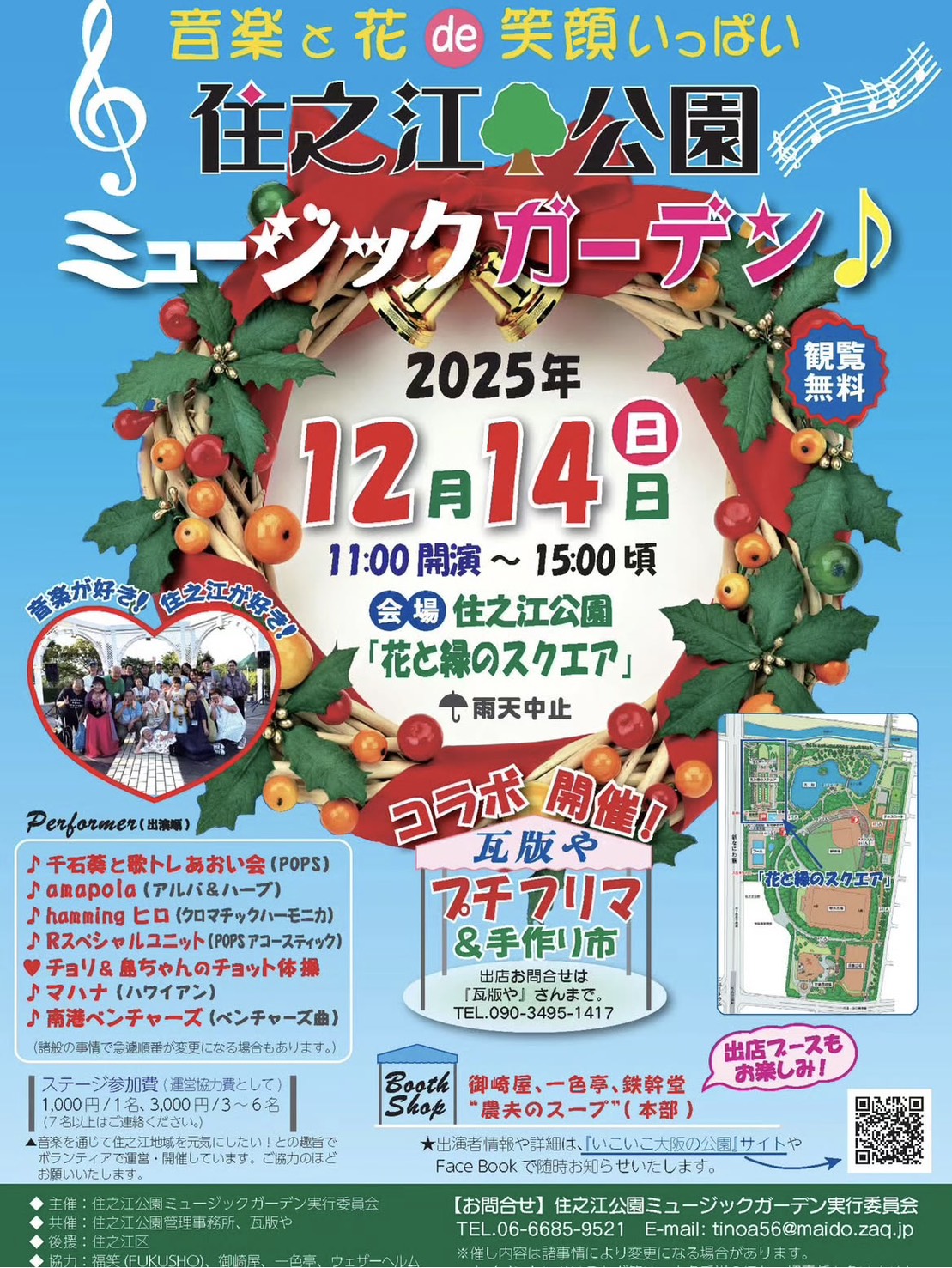 大阪市住之江区の住之江公園「花と緑のスクエア」で、ふた月に一度(該当月の第2日曜日に)開催している、観覧無料の音楽イベントです!