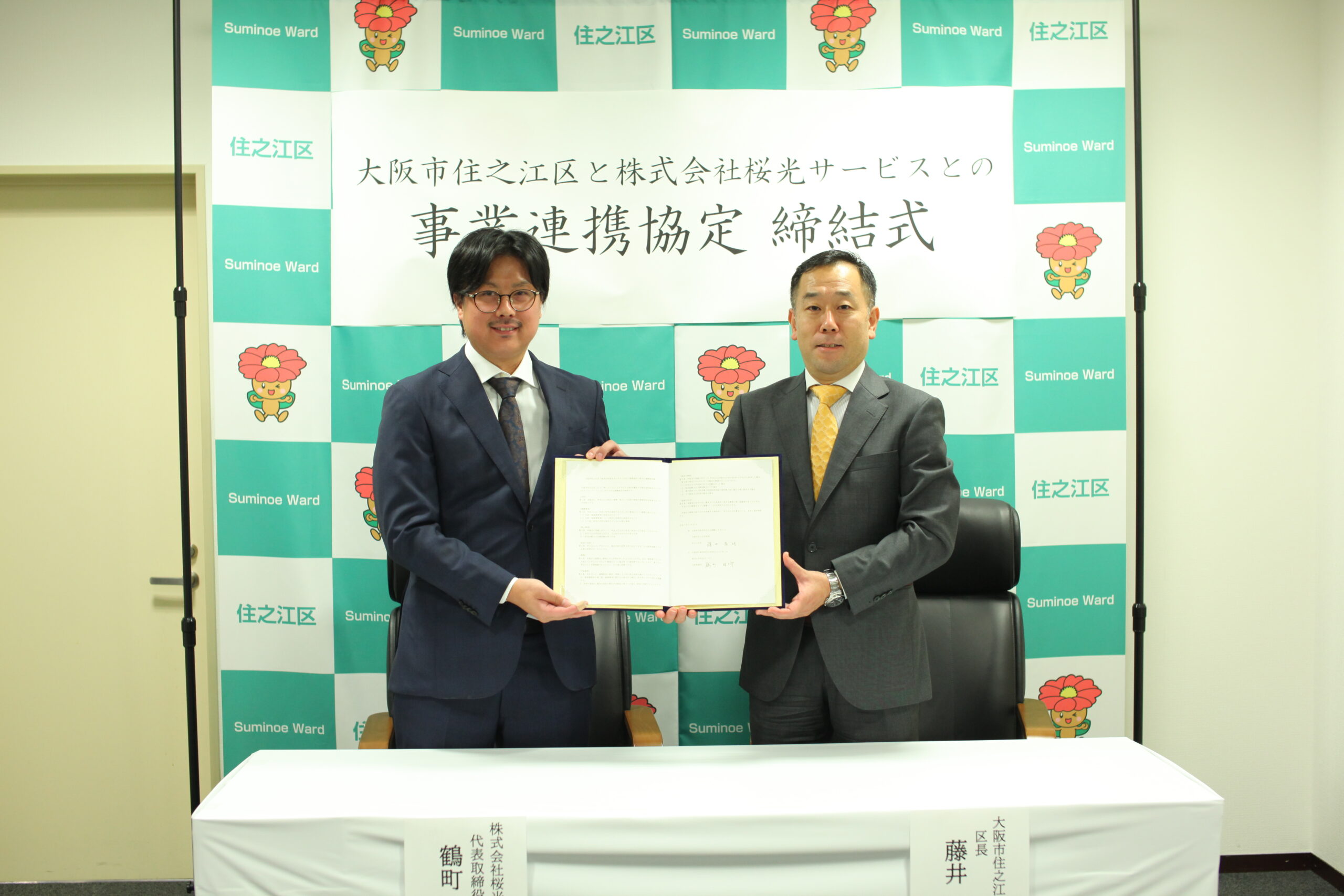 住之江区役所と株式会社桜光サービスとの協定の締結式が行われました。 今後「すみのえLABO」のサイトでは区役所と連携を図りながら 住之江区のより多くの情報を発信していきたいと思います。