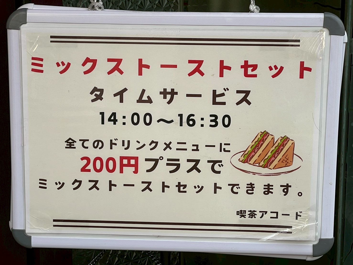 【全てのドリンクメニュー】に【+200円】で『ミックストーストセット』にできます!(※タイムサービス14:00~16:30)