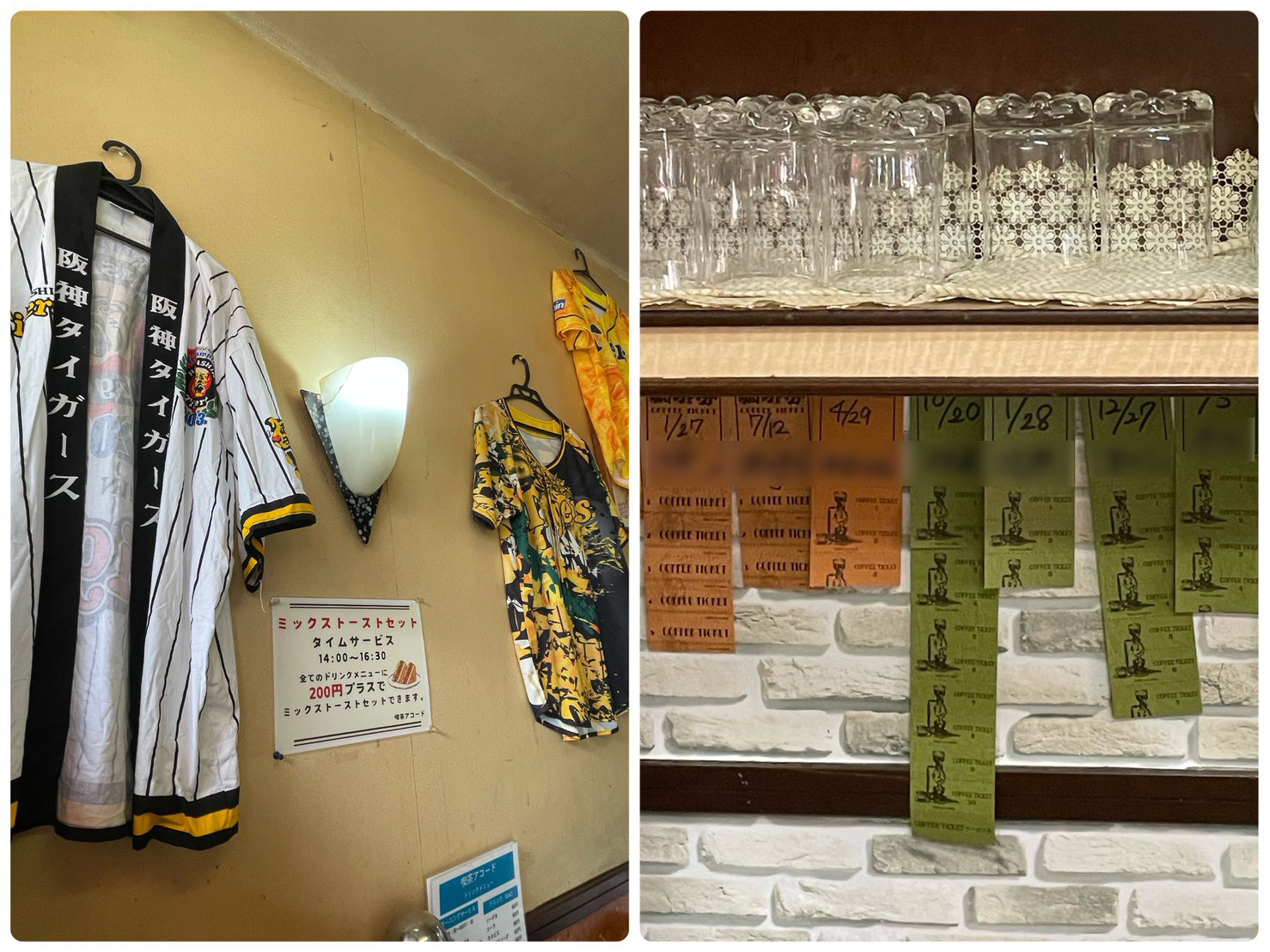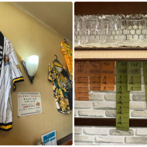 店内の壁には、店主がファンだという阪神のユニフォームが飾られています。