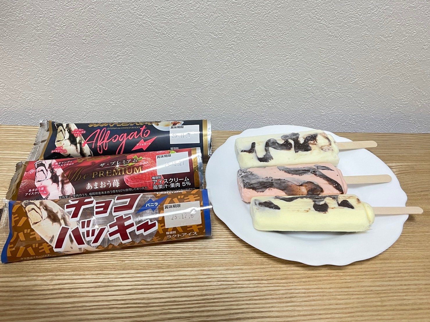 定番のバニラ味だけでなく、福岡県産のあまおう苺を使用した“チョコバッキー•ザ•プレミアムあまおう苺”やバニラアイスクリームにコーヒーパウダー入りチョコが入った“大人のチョコバッキーアフォガードエスプレッソチョコ&バニラ”があります。