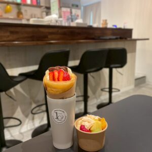 夜でも、もちもち生地のクレープとアサイーボウルを店内でゆっくり味わえるお店!