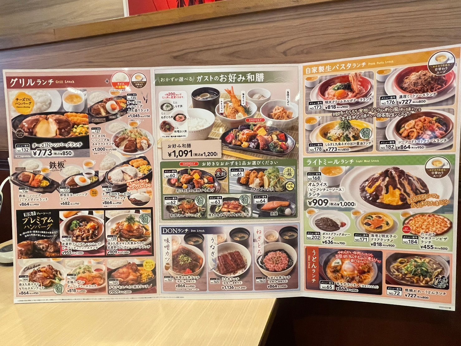 他にも、ランチメニュー、日替わりメニュー、お子さまメニュー、デザートなど豊富にあります。