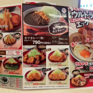 手頃なお値段で、メニューも豊富なかつやさんです。