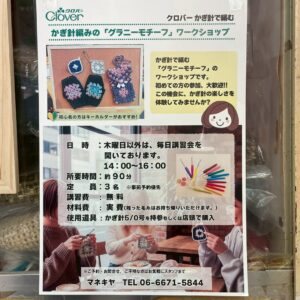 毛糸を購入すると、店内のスペースで講習を受けることができます。初心者向けの講習もあるので、初心者の方でも安心ですよ!