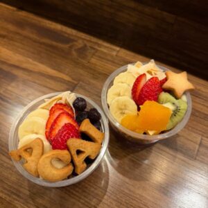 アルファベットクッキーで自分の名前や推しの名前などを乗せてオリジナルのアサイーボウルが作れます。