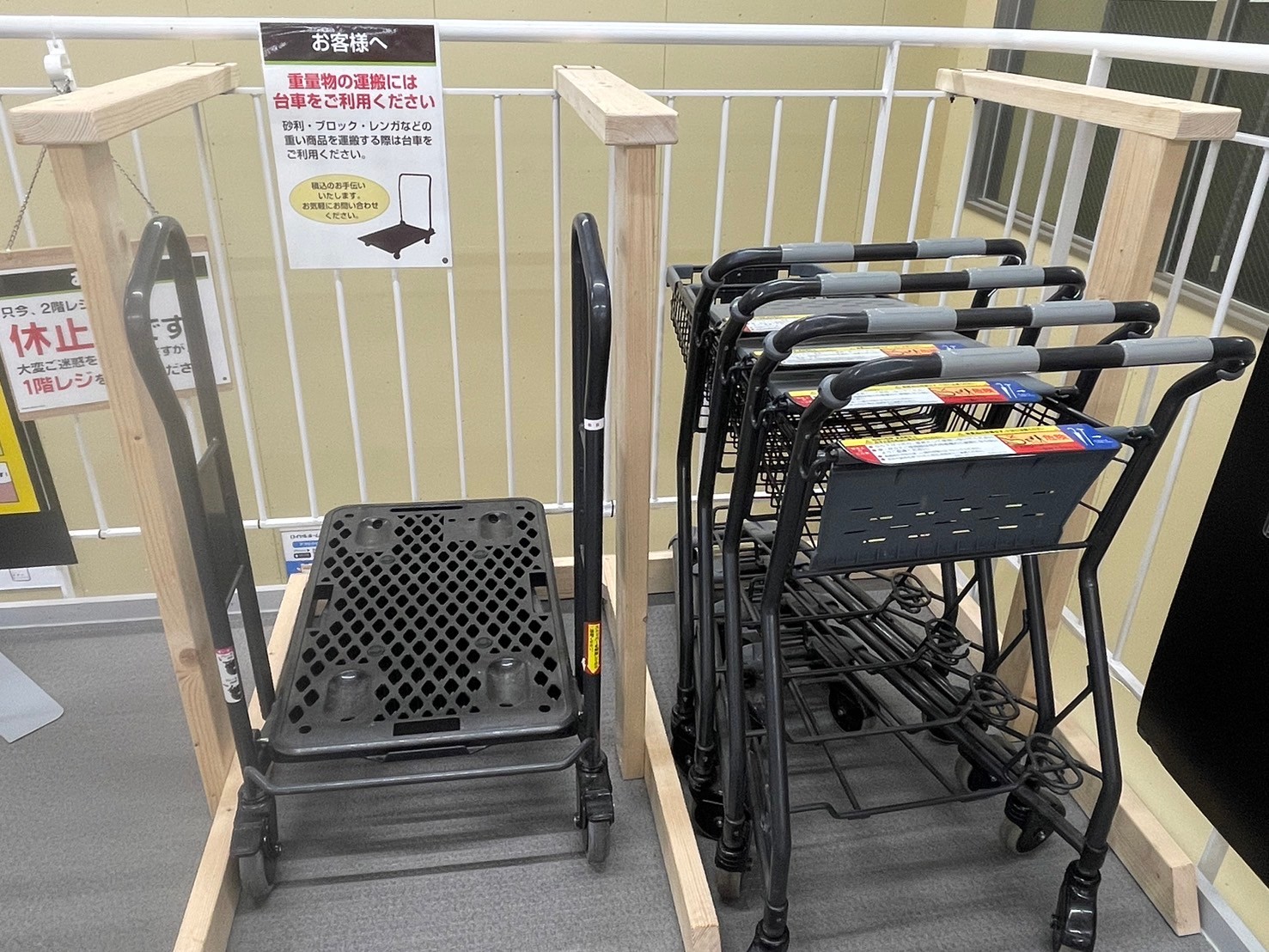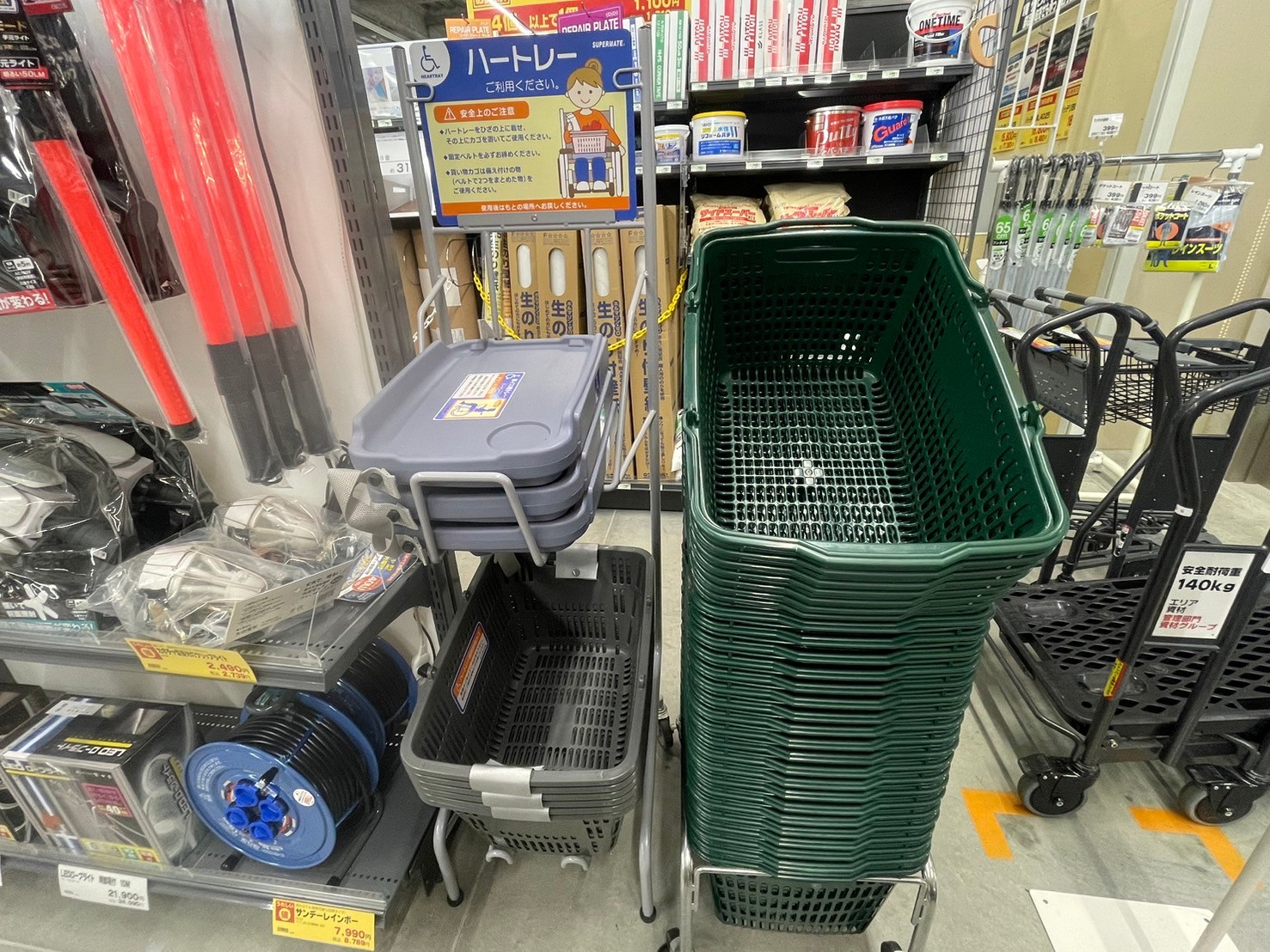 ●ハートレーあり(車椅子の方がカゴを持ち運びやすくする為のトレーです。膝の上にトレーを置き、その上にカゴを置いて運べます。) ●トラックの貸出 |