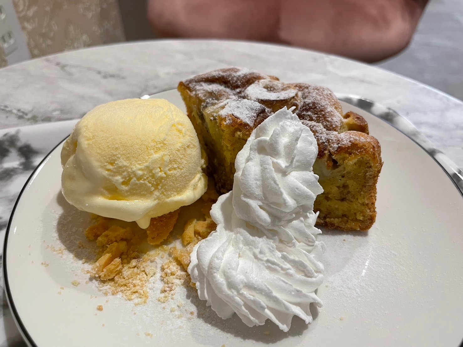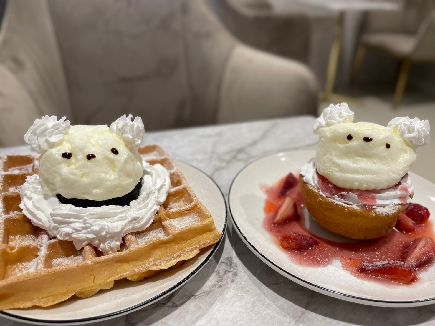 タルトやワッフルの上に乗っているのは、店長さん考案のアイスクリームのような冷たく冷やした特製のイタリアンメレンゲです!とてもふわふわで、初めて食べる食感です。ワッフルやタルトと一緒にぐちゃぐちゃに潰して食べるのがオススメです!