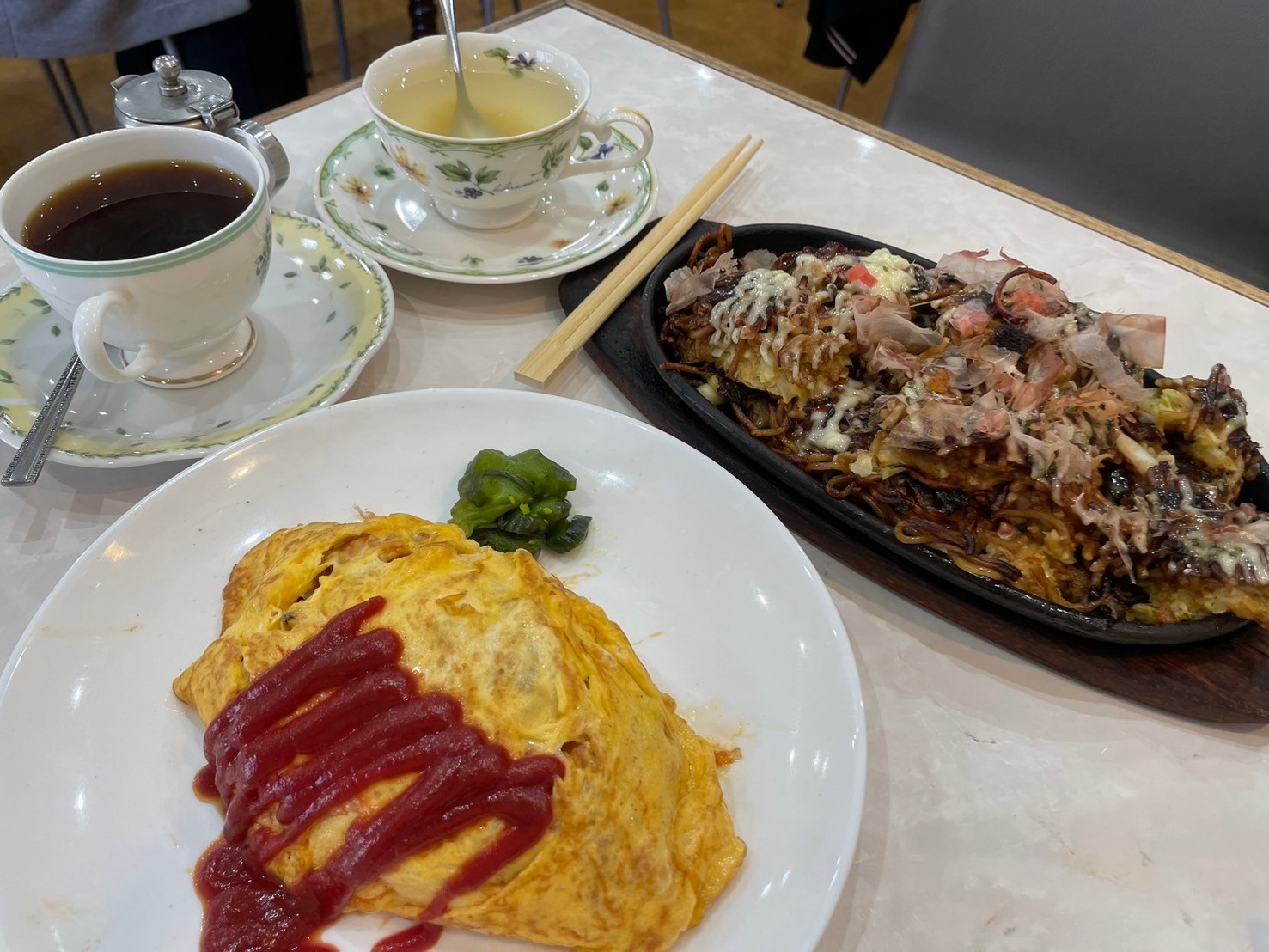 喫茶店でお好み焼きを楽しめることはなかなかないので、今回は、お好み焼きと喫茶店の定番メニューのオムライスを注文することにした。 味希のメニューは全て手作りだ。手際よく材料を切り、あっという間に2品が完成していく。“お好み焼き屋さん”ならではの鉄板の上で作られていくお好み焼きは、見た目に風情があり、食欲をそそる。 オムライスも懐かしい喫茶店のオムライスだ。 常連客のホットコーヒーの注文を受けると、猫舌だという常連客の要望にも応え、氷を提供する。 筆者たちの注文を作りながらも、店主1人でそのほかのお客さんの注文を取り、提供していく。無駄のない手慣れた動きだ。